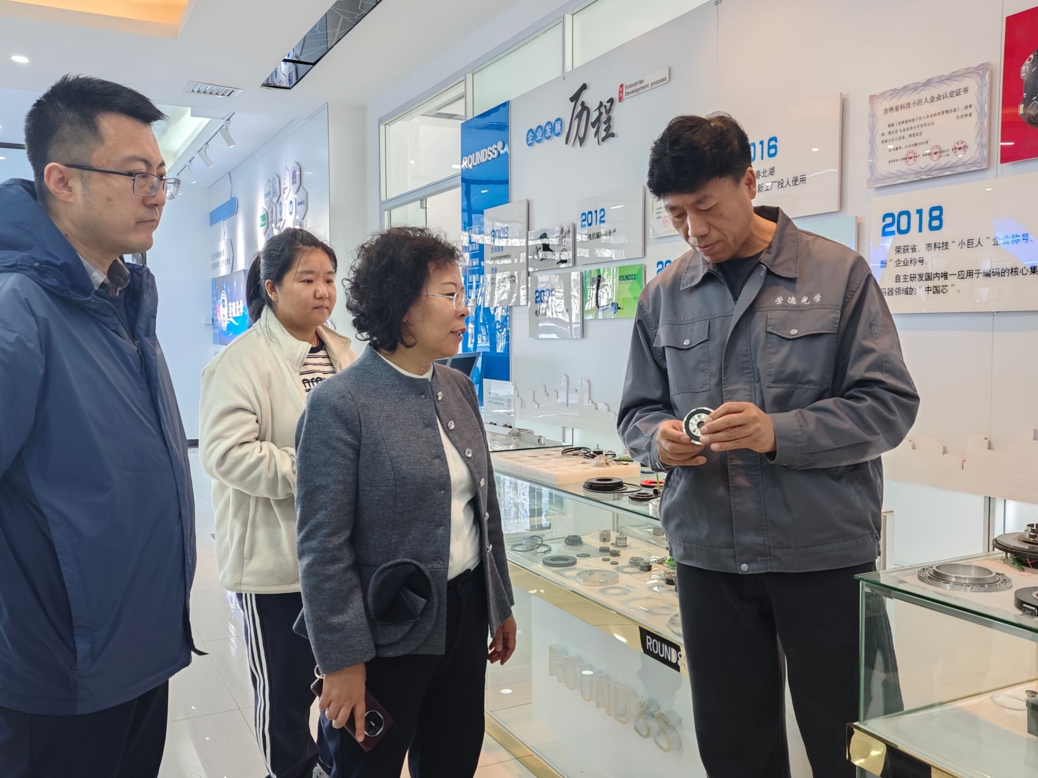 长春荣德光学有限公司是一家专注于工业编码器和高精密联轴器的研发、制造与销售为一体的国家级高新技术企业。交流中,倪总经理详细介绍了企业发展历程,并对编码器行业未来趋势进行了前瞻展望,随后带领师生实地参观了生产车间进行零距离观摩。迟耀丹院长向企业介绍了学院学科建设、人才培养及2026版专业培养方案的制定方针,强调学院始终立足服务国家经济发展,致力于培养行业急需的高素质应用型人才。