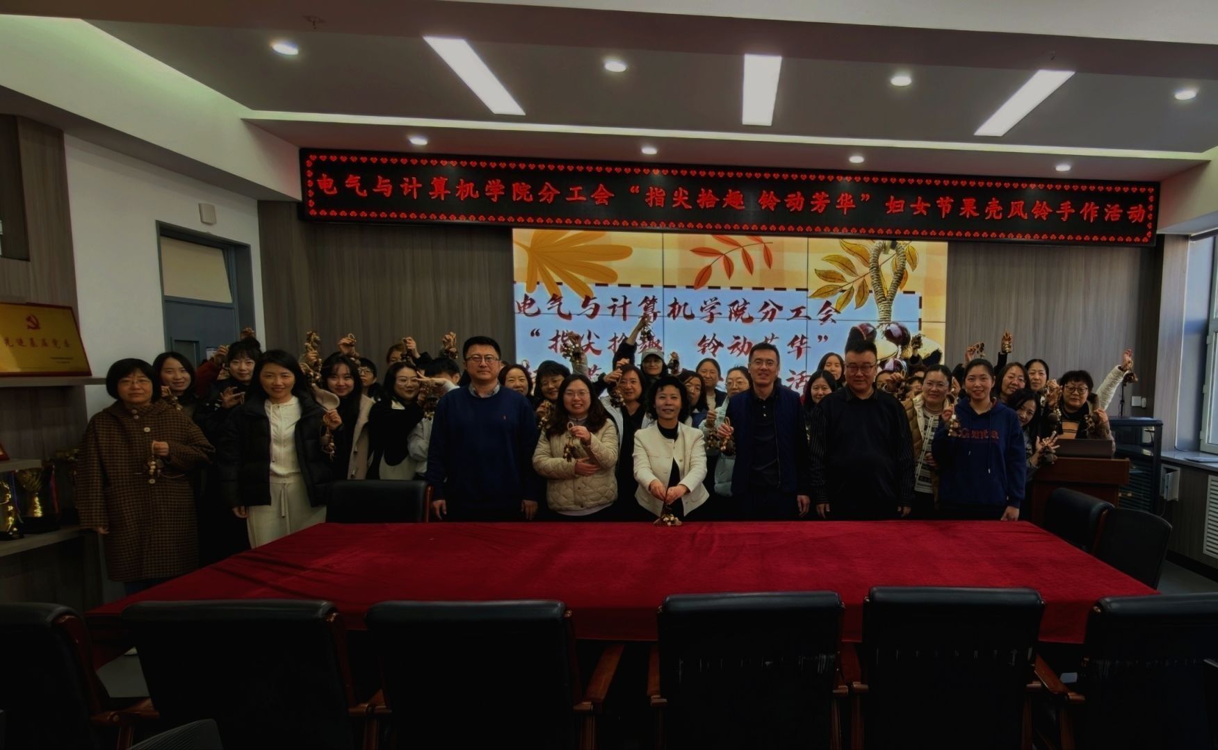 为庆祝“三八”国际劳动妇女节,丰富女教师的精神文化生活,3月11日下午,电气与计算机学院分工会精心组织的“指尖拾趣,铃动芳华”果壳风铃手工制作活动在学院会议室温馨举行。