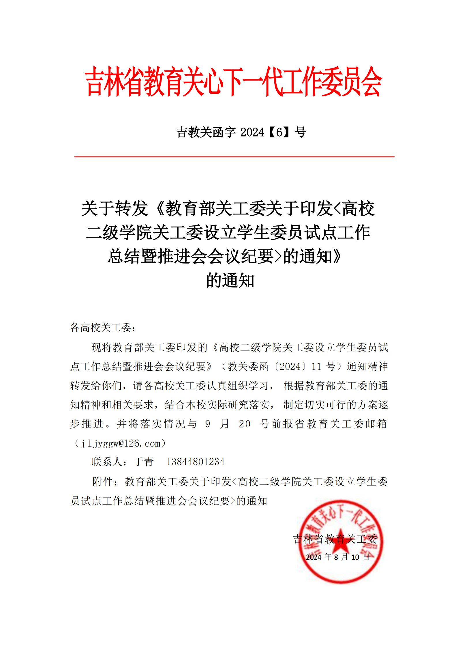 关于转发《教育部关工委关于印发<高校二级学院关工委设立学生委员试点工作总结暨推进会会议纪要>的通知》的通知