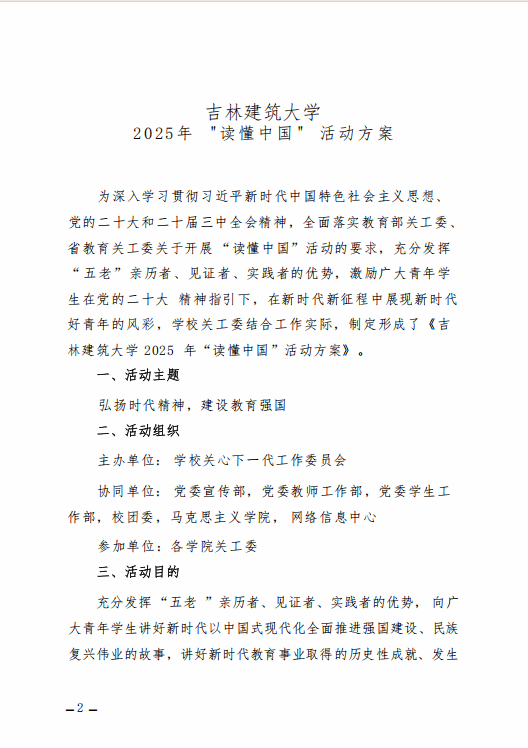 关于印发《吉林建筑大学2025 年"读懂中国 " 活动方案》的通知